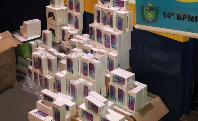 A carga foi apreendida pela Polícia Militar Rodoviária. Além dos celulares, estavam sendo transportados diversos outros aparelhos eletrônicos