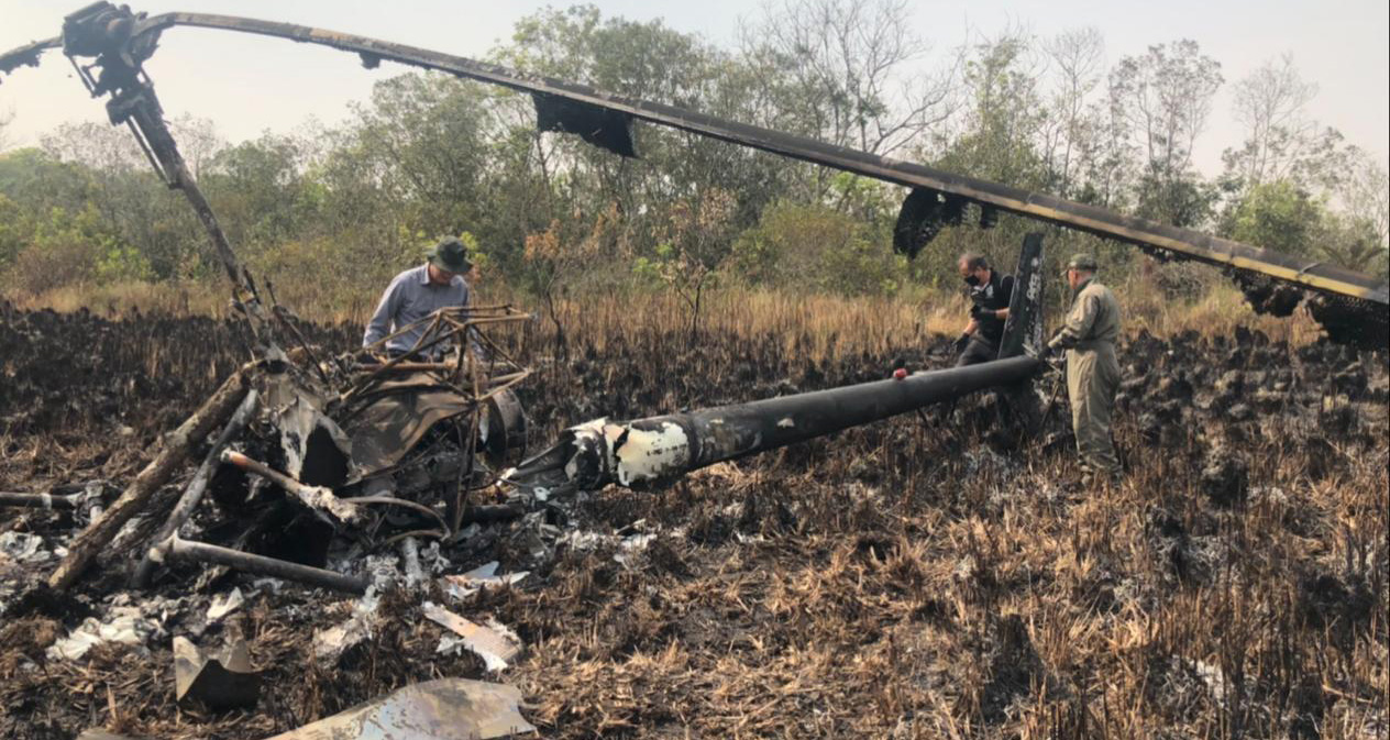 A Equipe especializada em repressão a crimes aeronáuticos ainda constatou que não houve queda da aeronave, mas sim, um pouso de emergência com posterior fogo da aeronave já em solo, com indícios de que o fogo teria sido provocado, portanto, sem vítima fatal nos destroços da aeronave ressaltando se que houve tempo suficiente para fica do comandante e outros passageiros que ali estivessem a bordo visto que o pouso se deu em manobra de emergência denominada por auto rotação que não ocasiona maiores danos na aeronave ou em seus ocupantes.