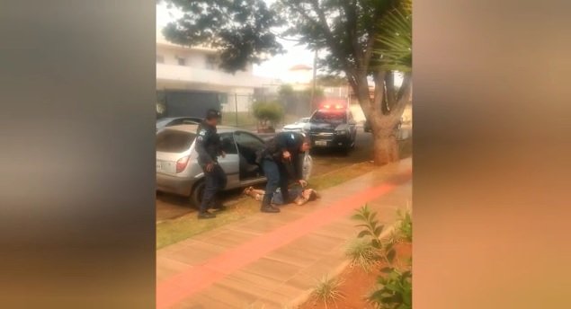 Imagens gravadas mostraram o momento em que a polícia chega a Rua Calil José Domingos e o bandido está preso dentro do veículo Celta que seria de um dos advogados do escritório. Ele é retirado de dentro do carro e levado pelos militares e levado para a delegacia.