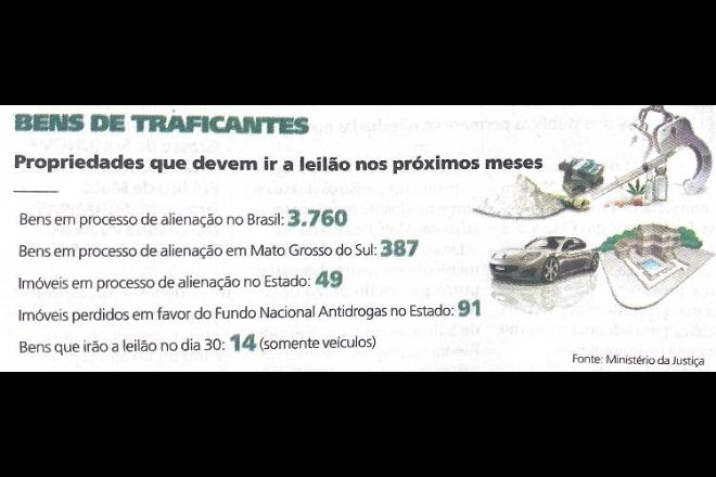 O Ministério da Justiça vai intensificar os leilões de bens apreendidos de traficantes em todo o Brasil, medida que coloca em prática o plano de desintegrar financeiramente as grandes quadrilhas. Mato Grosso do Sul tem papel importante nesse plano do governo federal, que já está em curso.