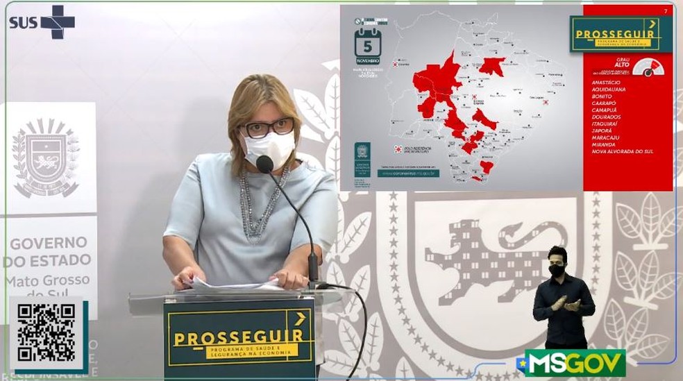 A secretária estadual adjunta de Saúde, Christinne Maymone, apresentou nesta quinta-feira as novas bandeiras de orientação do Programa Prosseguir, do governo de Mato Grosso do Sul.