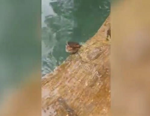 Vídeo gravado no dia 31 de dezembro por um grupo de amigos mostra a serpente com a cabeça para fora da água a cerca de um metro do grupo.