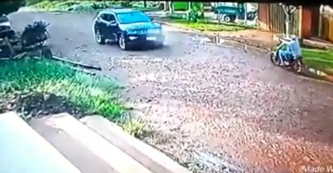 Câmera de segurança de uma residência flagrou momento em que o Suboficial da Polícia Paraguaia, Fredy Dias, de 30 anos, foi morto na manhã desta quarta-feira (13).