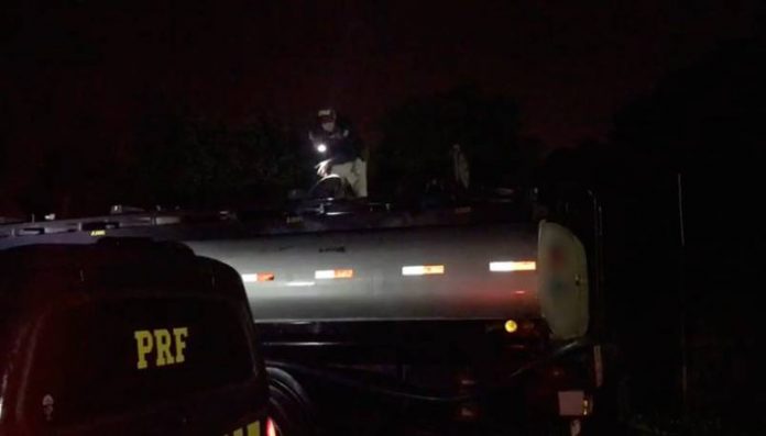 Policiais rodoviários federais flagraram esquema de roubo de combustível, nesta quinta-feira (21), na BR-262, em Anastácio (MS). O caminhão que transportava óleo diesel tinha fundos falsos para ocultar parte da carga.