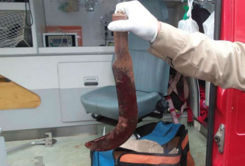 Rapaz bêbado tenta agredir esposa e leva dois golpes de foice no lombo