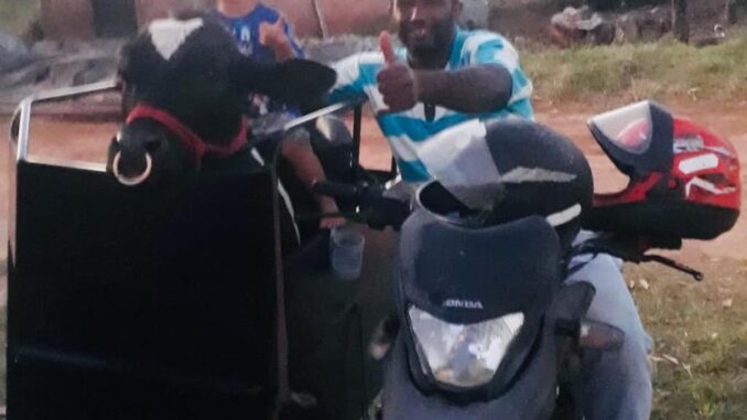 Ex-peão de rodeio percorre ruas como ‘mototáxi de vacas’ e vira atração em cidade de MS