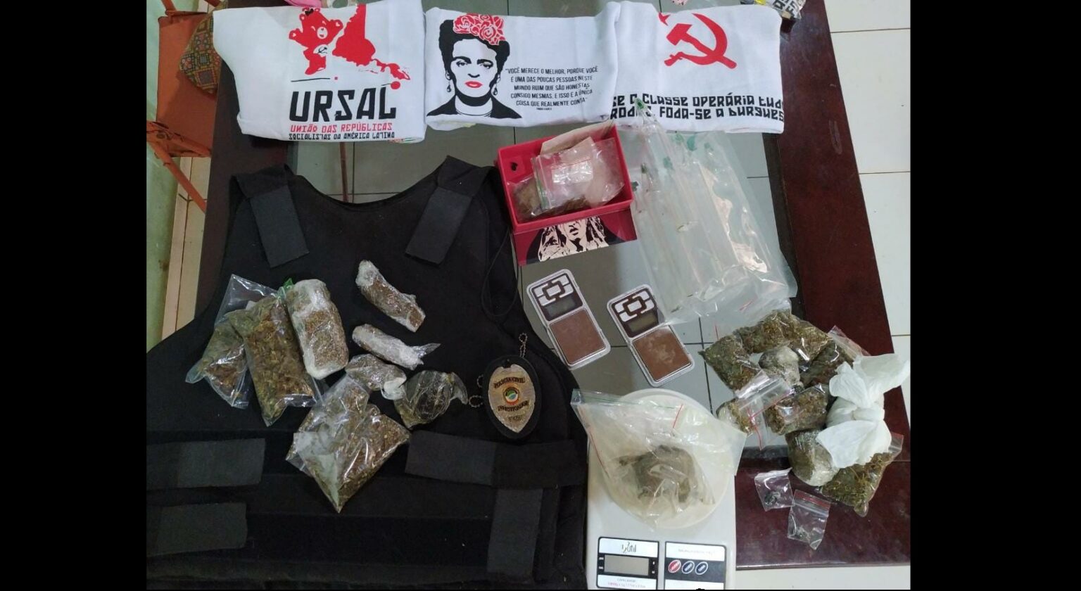 Em continuidade às diligências, Policiais da DEFURV encontraram ainda mais droga na residência de um dos autuados, da espécie “ecstasy” e maconha. Foi encontrado, ainda, um colete balístico e material típico de traficância, como balança de precisão e outros.