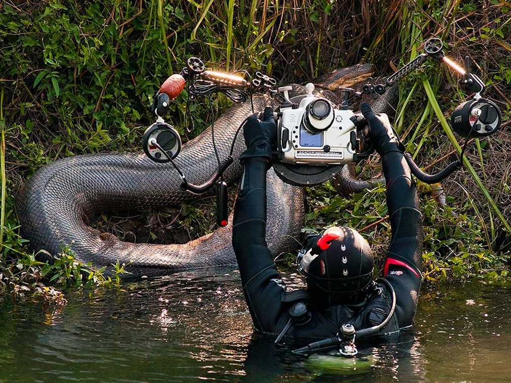 “Deixo bem claro para os fotógrafos, que aqui não se deve chegar muito perto das sucuris e muito menos encostar nelas, até por conta da nossa legislação. Caso o animal se sinta incomodado, a expedição termina naquele momento”, explicou .