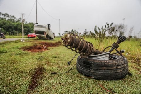 Motorista dorme ao volante, perde controle do carro e capota em Campo Grande