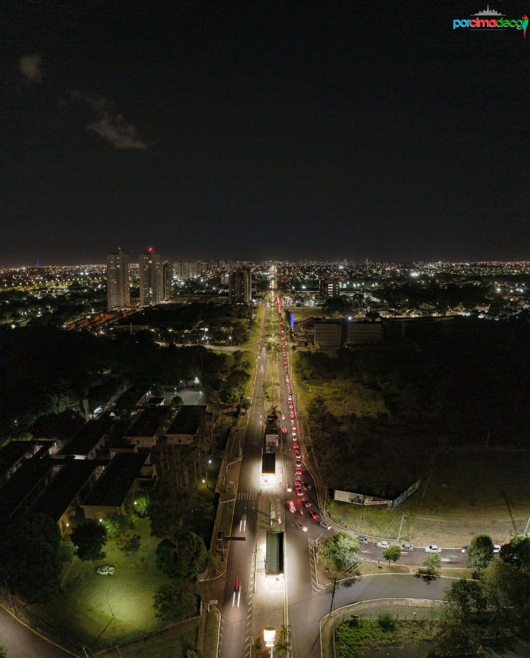Fila de carros na Mato Grosso chegou até à entrada do Parque dos Poderes (Foto: Por Cima de CG)