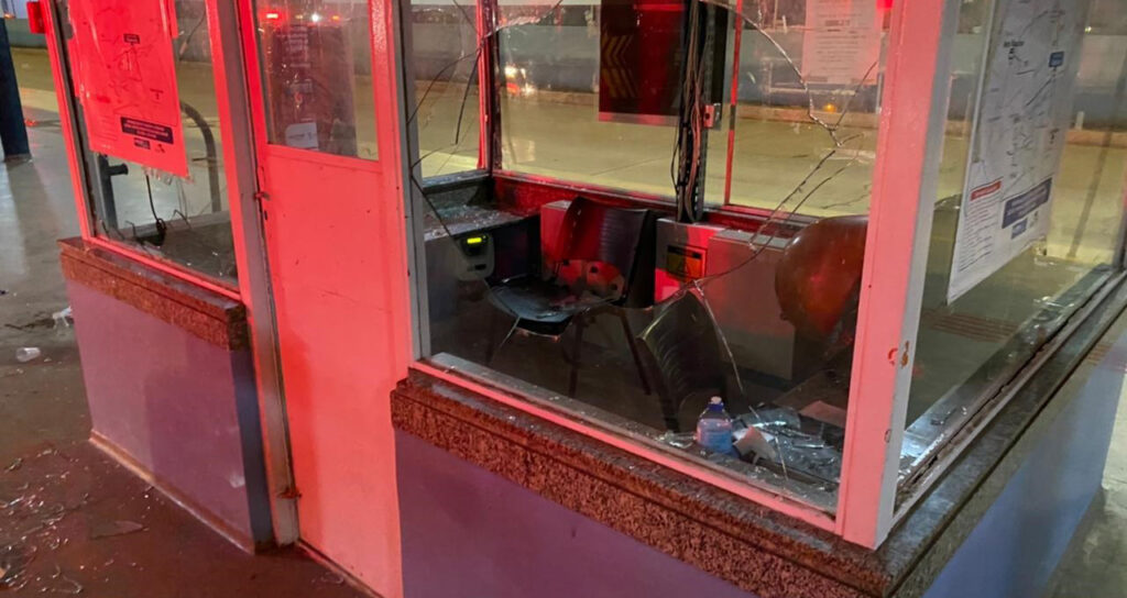 Por volta das 23h deste sábado (17), o Terminal Guaicurus da Capital teve a cabine quebra e ateado fogo por um adolescente que invadiu o local. Ele foi detido pelos agentes da Guarda Civil Metropolitana, lotados no posto fixo de segurança do terminal.