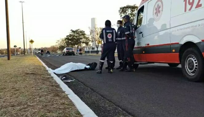 O corpo do trabalhador ficou caído bem próximo ao canteiro central.
