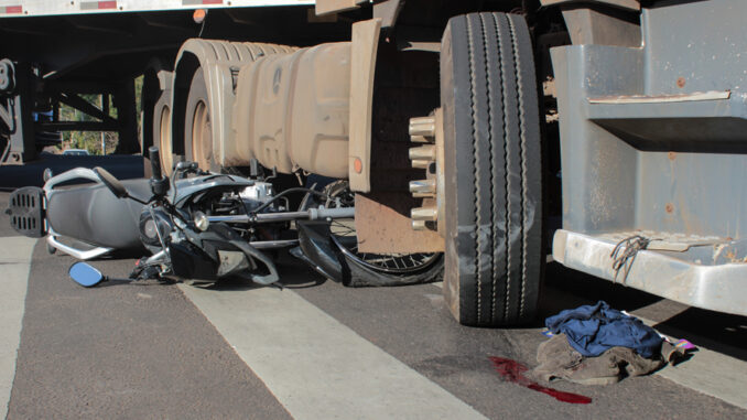 Apesar de motocicleta ter parado embaixo do caminhão, vítima teve apenas ferimentos leves