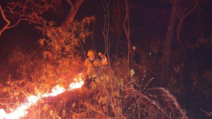 Neste domingo (22), a reportagem apurou que o fogo ainda não está contido e eles continuam na região fazendo o combate.