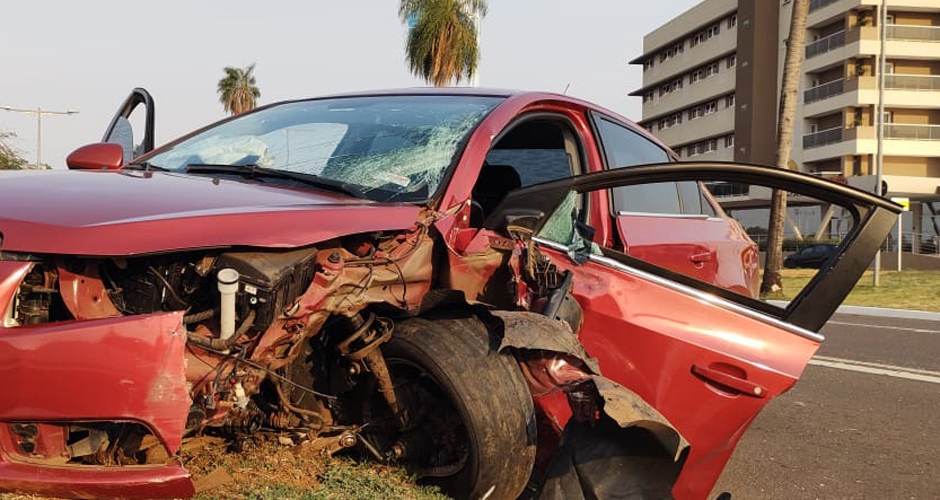 Na madrugada deste domingo (19), um motorista ficou gravemente ferido após perder a direção do carro e bater contra um coqueiro e poste de iluminação.