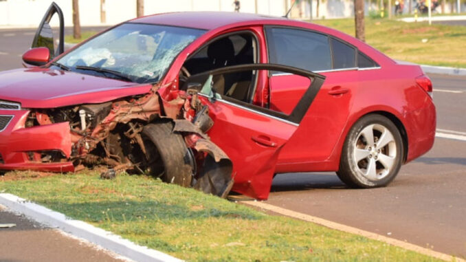 O acidente aconteceu na Avenida Duque de Caxias, próximo da Base Aérea. Nas imagens é possível ver que a lateral e a frente do veículo ficou totalmente destruída.