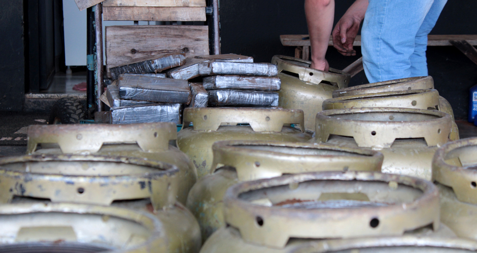 Cada botijão tinha 15 tabletes de cocaína pura, embalada em bexiga na cor preta e com pó de café para tentar disfarçar o odor.