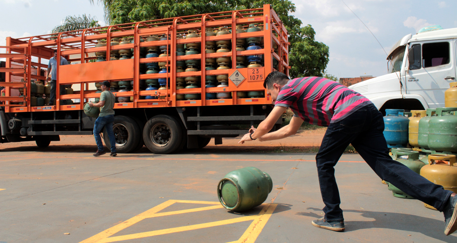 Foi acionada equipe dos bombeiros para apoio, devido ao risco e após remanejamento dos botijões, verificou-se que 28 unidades estavam carregadas, contendo fundo falso, razão pela qual foi manufaturada uma ferramenta artesanal por um Policial Civil que tem uma serralheria, a qual auxiliou na abertura dos botijões.