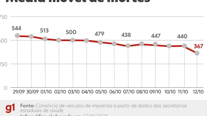 - Média de novas mortes nos últimos 7 dias: 367 (variação em 14 dias: -32%)