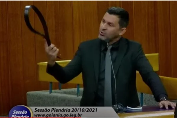 Vereador de Goiânia, Sargento Novandir, tirou o cinto da cintura, bateu sobre a tribuna e disse que queria “educar” o colega Geverson Abel
