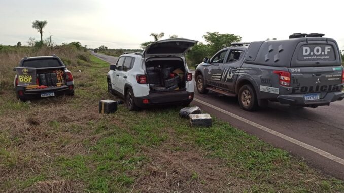 Os policiais faziam patrulhamento na MS-295 quando avistaram os veículos suspeitos. Na abordagem, foram localizados em uma Renault/Aroch 771 quilos de maconha. Já em um Jeep/Renegade foram encontrados 710 quilos da mesma droga. Nos carros foram localizados ainda rádios comunicadores, utilizados pelos traficantes para se comunicarem.