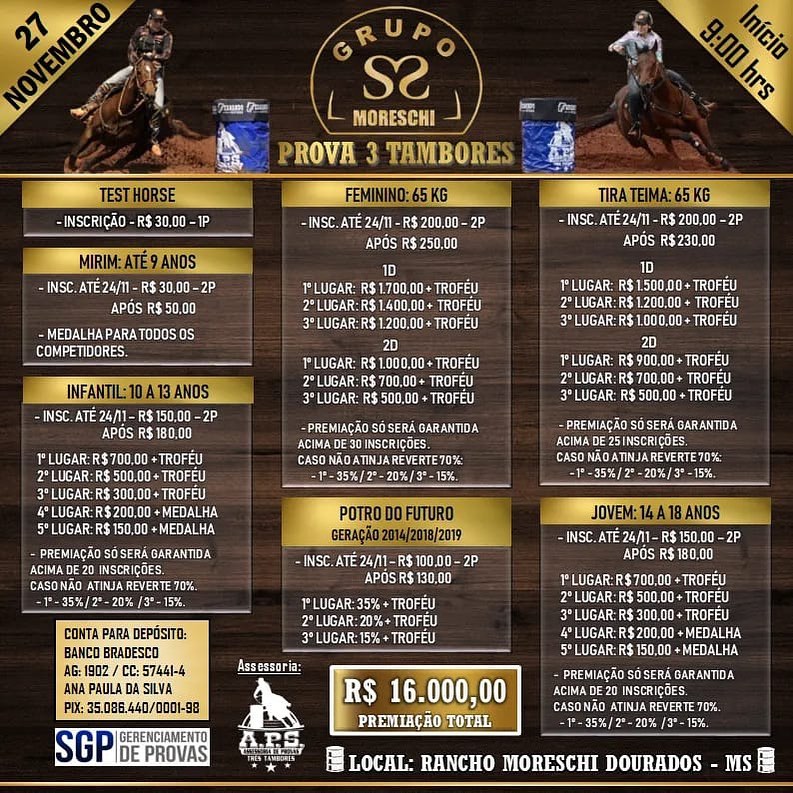 Prova 3 tambores, as premiações somam R$ 16 mil o total