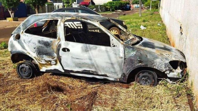 Horas após o roubo, o veículo foi encontrado pegando fogo