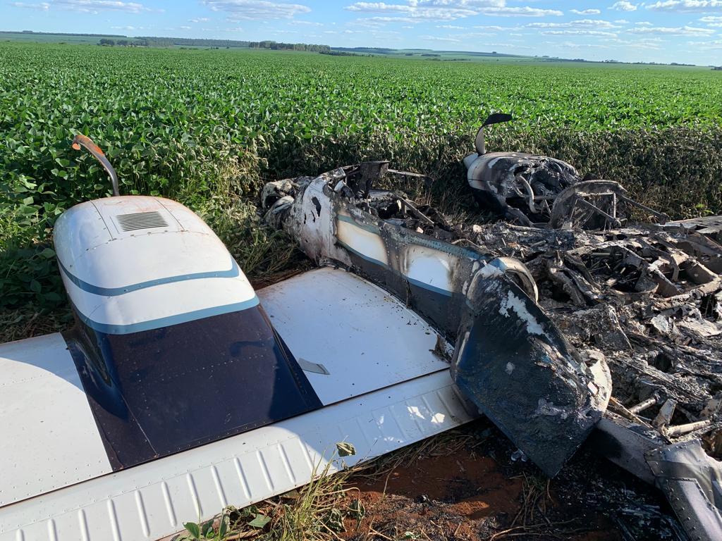 Um bimotor Sêneca matrícula PT-RTP caiu e acabou incendiado em meio a plantação de soja nesta quinta-feira, 9 de Dezembro. Os policiais do Departamento de Repressão à Corrupção e ao Crime Organizado (Dracco) estão no local apurando as circunstâncias.