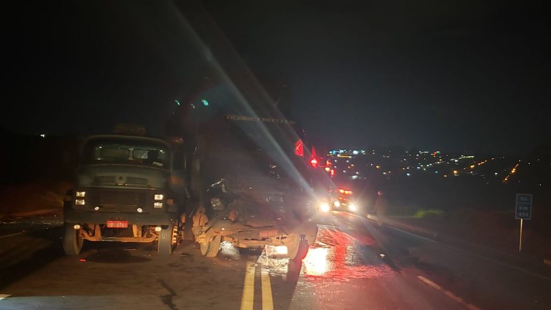 A colisão aconteceu em uma subida, logo após uma descida. O Corpo de Bombeiros teve que retirar o motorista da cabine que ficou danificada. De acordo com testemunhas, ele reclamava muito de dores. Já o condutor do caminhão carregado com grama não sofreu ferimentos. A PRF (Polícia Rodoviária Federal) foi acionada para os dois acidentes.