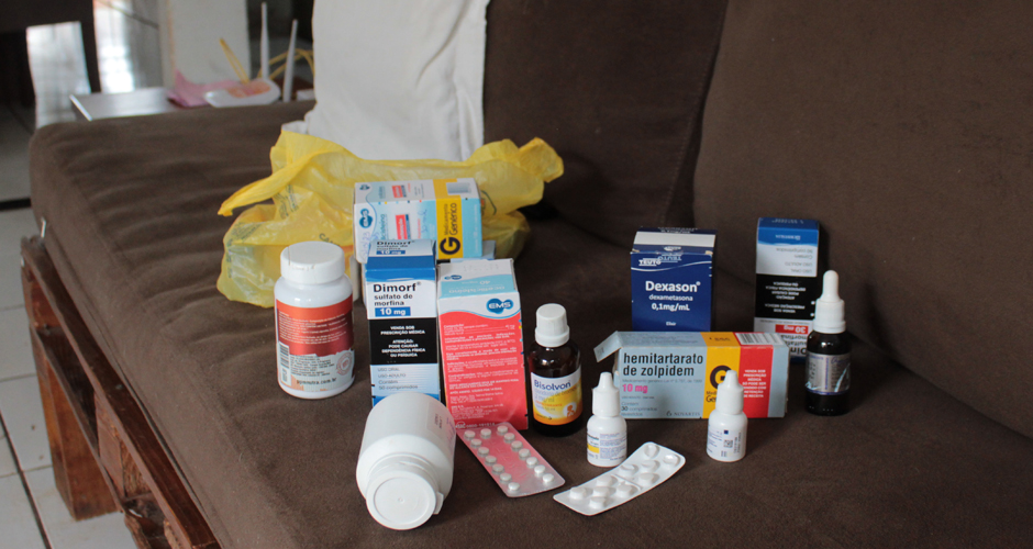 A única ajuda que a Casa da Saúde dispôs foi a Morfina. Os remédios para enjoo, vitaminas, suplementos e alimentação estão sendo comprados por Juliana. “É muito caro. A gente está gastando R$200 por dia com remédio”, afirma ela.