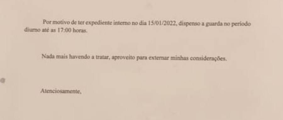Ele alega ter pedido um documento para ser dispensado do serviço em prédio da secretaria