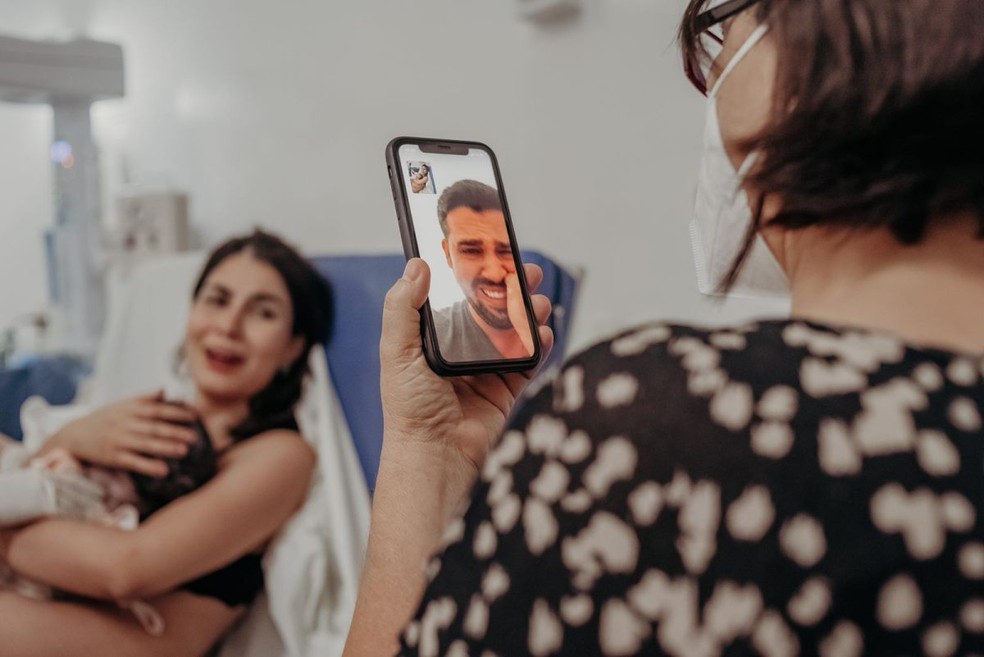 Foram cerca de cinco horas na maternidade até Enrico nascer. Durante este tempo, Rafael tinha notícias por mensagens e chamadas de vídeo com intervalos. Apenas quando a mãe entrou na última fase do parto que a ligação foi feita. Do outro lado da tela, Rafael esperava ansioso por ouvir o choro do bebê.