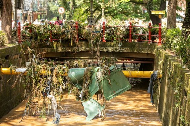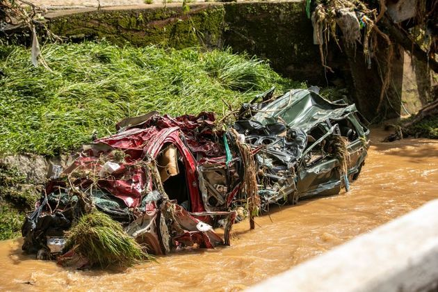 Em frente ao Museu Imperial, antigo palácio de verão de dom Pedro II, carros batidos em diversas direções foram levados pelas chuvas. Nos rios, incontáveis veículos precisaram ser removidos na tarde de quarta-feira (16/2).
