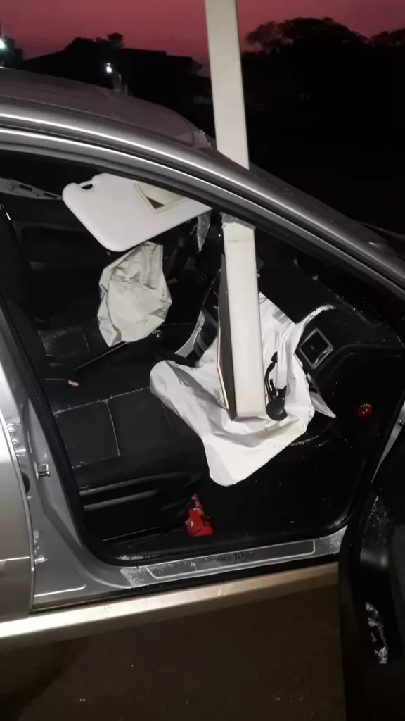 O carro ficou destruído e o motorista com lesões leves. Ele contou também que estava bebendo com amigos duas horas antes do acidente e fez teste de alcoolemia, que apontou crime de trânsito: 0,68 miligramas de álcool por litro de ar.