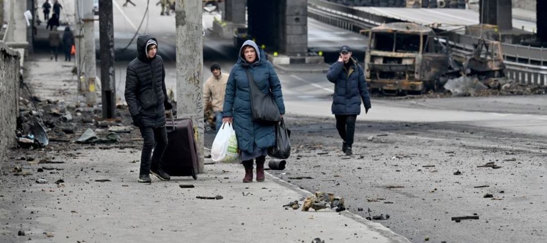 Refugiados ucranianos se reúnem no centro de distribuição de Korczowa, Polônia. Quase 1,37 milhão de refugiados fugiram da Ucrânia desde a invasão russa, mais da metade deles rumo à Polônia, segundo a agência de refugiados da ONU