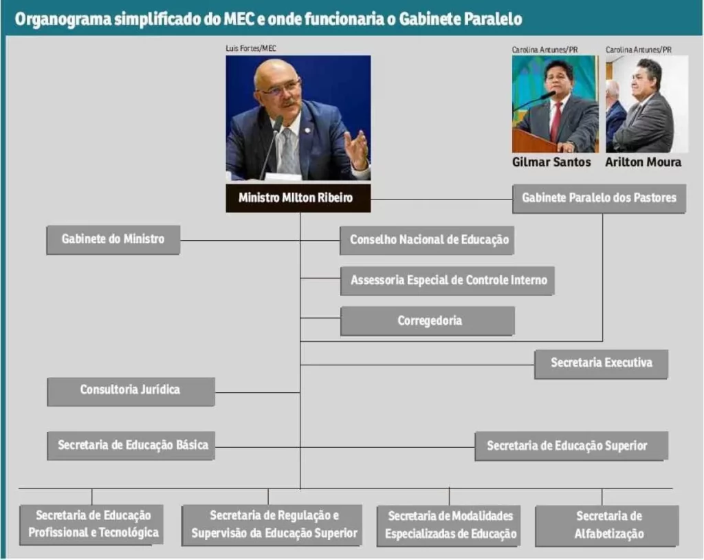 Organograma simplificado do MEC e onde funcionaria o Gabinete Paralelo