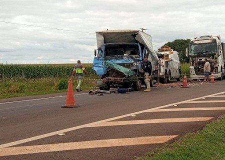 Conforme apurado pelo CaarapoNews, uma carreta baú e um caminhão Toco baú estavam parados no pare e siga, quando um caminhão Rodotrem se chocou com o que estava no meio e este consequentemente bateu no primeiro