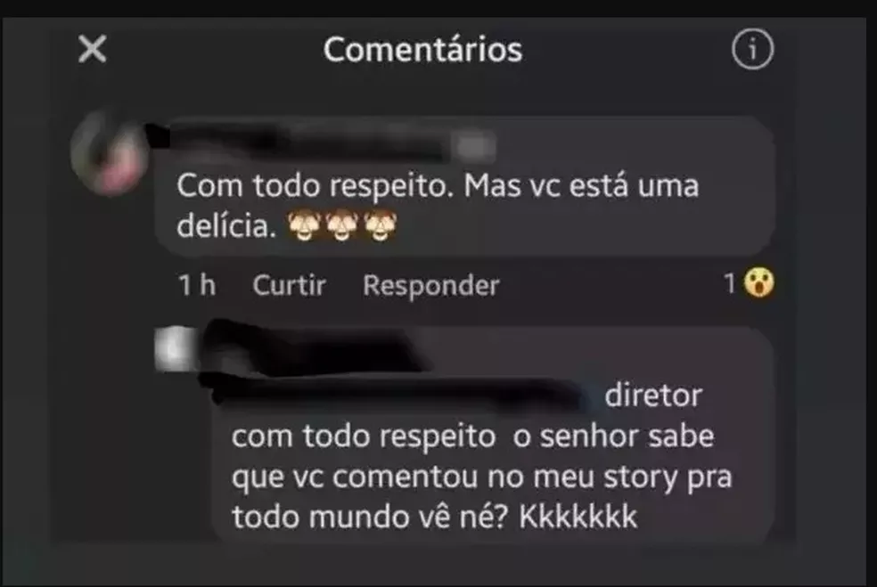 Uma das mensagens enviadas pelo diretor para a vítima: “você tem uma boca maravilhosa” — Foto: Jornal da Nova/ Reprodução