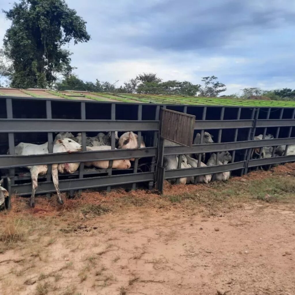 Conforme as informações da Polícia Militar Ambiental (PMA), o veículo de carga viva transportava 65 animais.