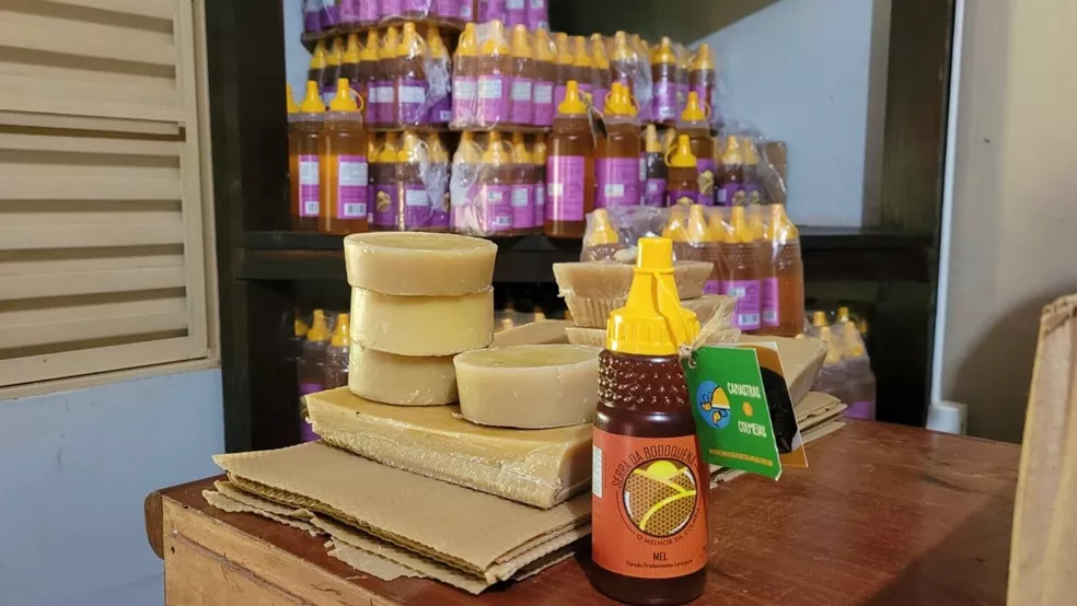Cera e mel estão entre os produtos produzidos pela empresa de Adriano. — Foto: g1MS/RenataBarros