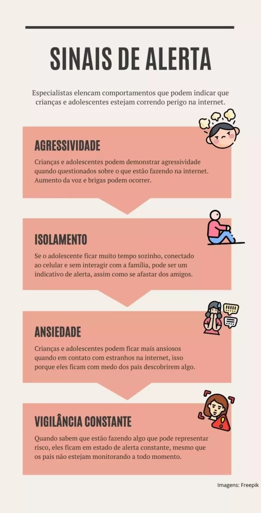 “Geralmente as pessoas que se aproximam com o intuito sexual tentam transformar os pais na pior espécie do mundo, convencê-los de que aquela família não é boa. Isso piora se essa criança ou adolescente tem alguma dificuldade de relacionamento com aquela família. Ele usa aquilo contra eles. Então, às vezes a criança e o adolescente pode demonstrar agressividade, principalmente quando o pai questiona alguma coisa da internet, a criança ou o adolescente vai levantar a voz, vai gritar, vai iniciar uma briga”, cita Vegini.