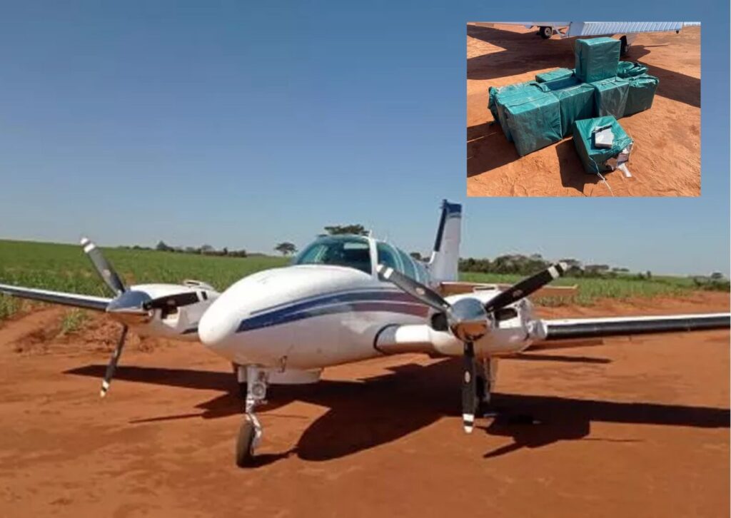Bimotor não tinha plano de voo e fez um pouso forçado em São Paulo. Droga foi apreendida por agentes da Polícia Federal.