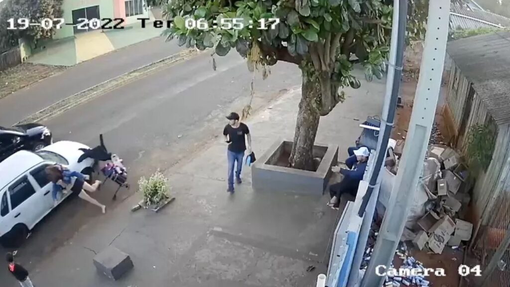 Imagens de câmeras de segurança mostram o exato momento em que o motorista, identificado como Paulo Alberto Gonçalves Fernandes, de 29 anos, atropelou as vítimas. A mulher aparece caminhando próximo ao meio-fio com o bebê no carrinho e o outro filho na calçada, quando o veículo se aproxima, atropela as vítimas e foge sem prestar socorro.