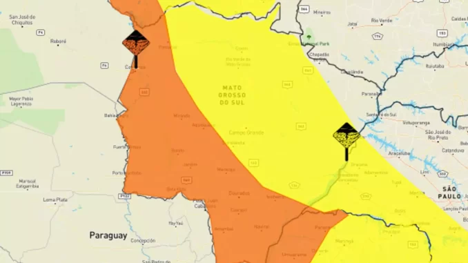 Conforme o Inmet, os alertas amarelo e laranja são considerados moderados, ou seja, há risco de estragos principalmente para cidades da região sul e oeste do Estado, como Dourados, Sidrolândia, Jardim, Miranda e Corumbá.