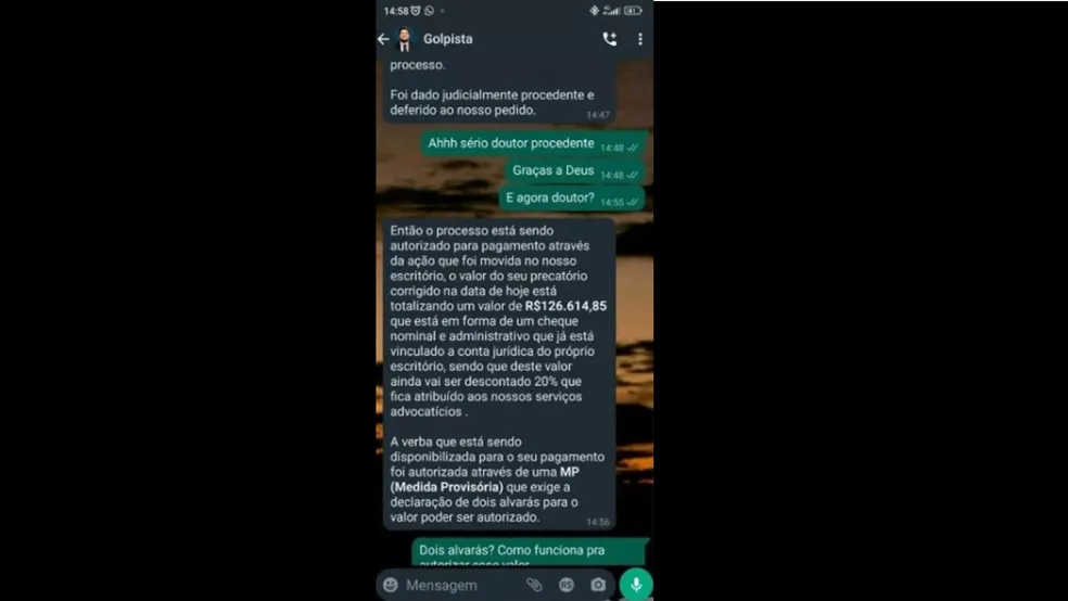 Conforme divulgado pela OAB-MS, as vítimas recebem, em nome de um suposto escritório, mensagens pedindo para que seja feito um pagamento para a liberação de precatório. O golpista diz que só após ser pago o valor, o cliente teria acesso ao crédito de uma decisão judicial. Depois que o “débito” foi efetuado, o bandido sumiu e parou de responder.
