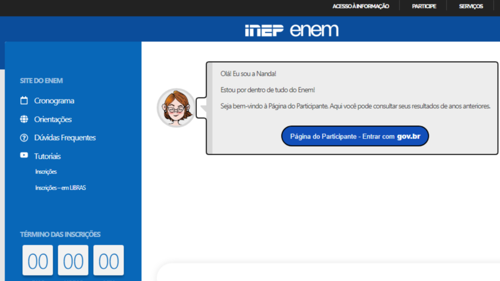 Página do Participante do Enem no site do Inep — Foto: Reprodução