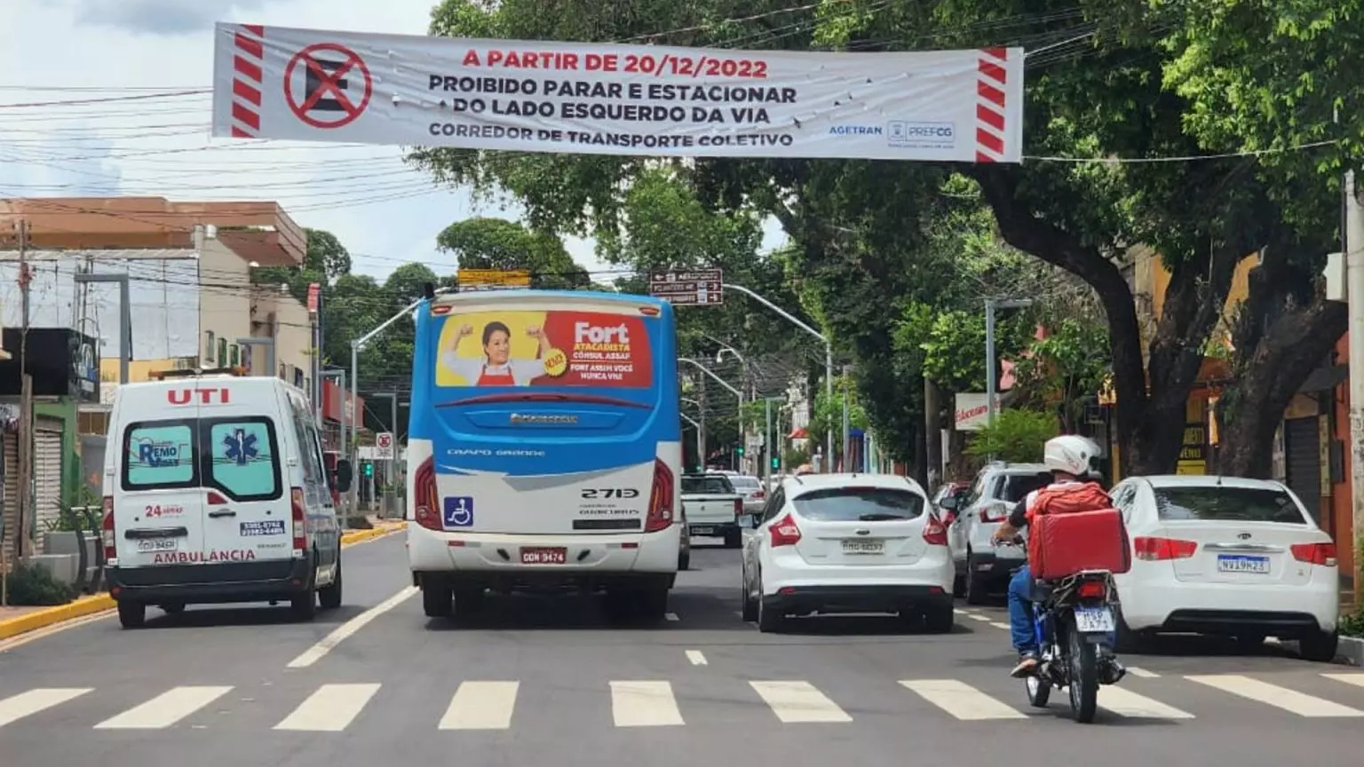 Para orientar motoristas, a Agetran (Agência Municipal de Transporte e Trânsito) afixou faixas pelo Centro, informando que desde o dia 20 de dezembro não pode estacionar ou parar à esquerda na Rui Barbosa, porque ali é corredor de ônibus.
