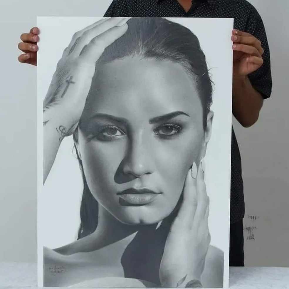 Ainda conforme o desenhista, o desenho de 50×79 surgiu como uma forma de representar a força e a história da Demi Lovato. “Não fiz o desenho para homenagear a artista Demi Lovato, mas sim a Demetria Devonne Lovato e a pessoa que ela é com a família e os amigos”, afirmou.