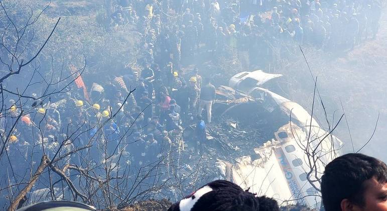 O avião caiu entre os aeroportos doméstico e internacional de Pokhara, no centro do país, pouco antes das 11h, hora local (2h, no horário de Brasília).