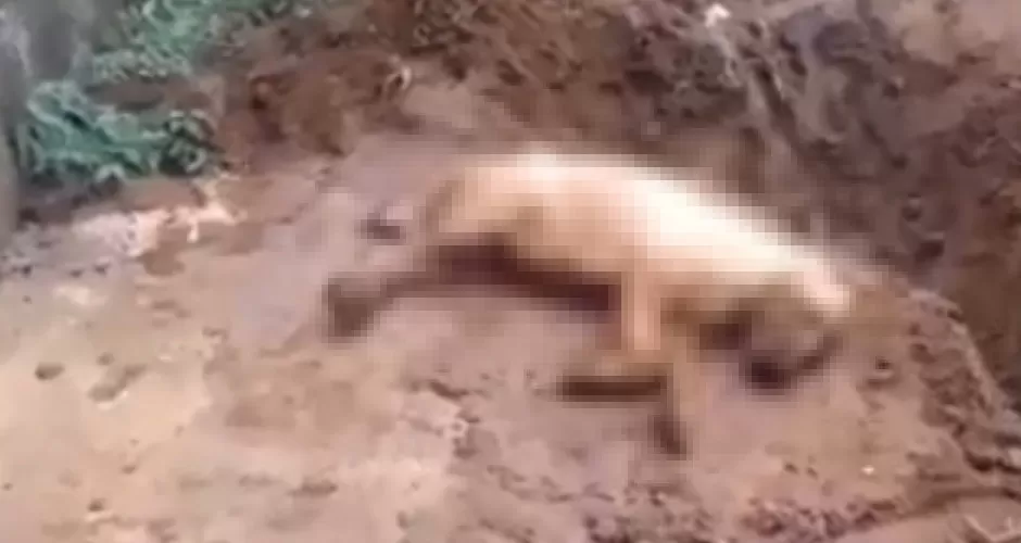 A cachorrinha prenha não sobreviveu após ser enterrada viva. Segundo as informações, o animal chegou ter alguns dos filhotes no buraco e dois deles sobreviveram. Em seguida, ela morreu.